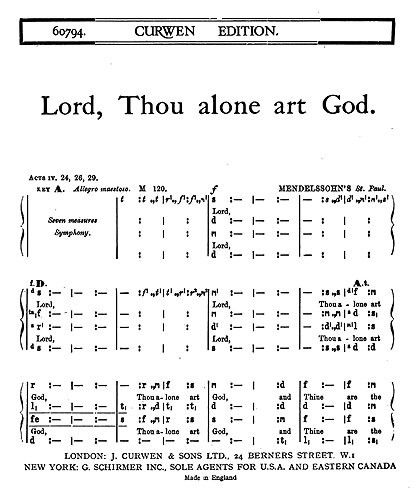 Mendelssohn Lord, Thou Alone Art God SATB Tonic Solfa