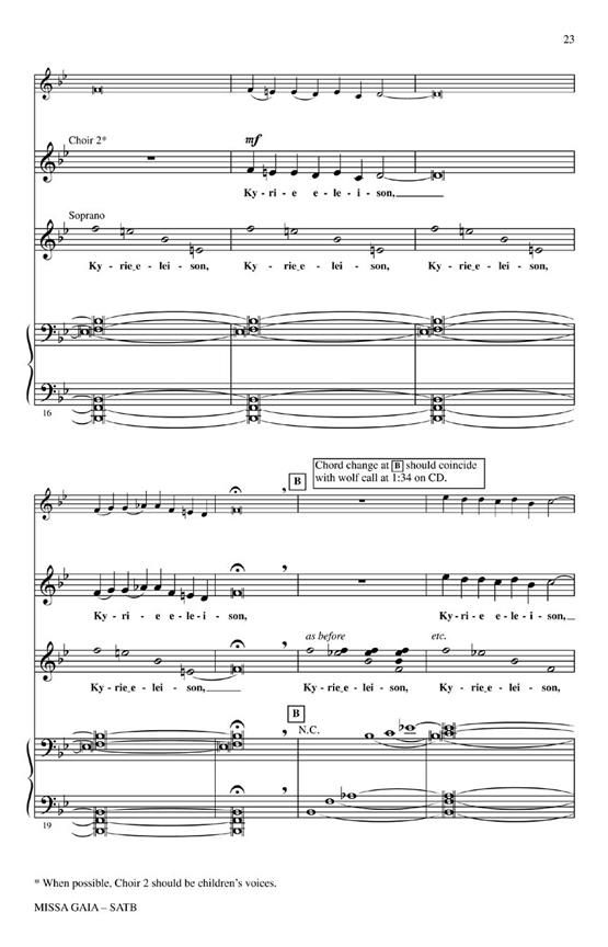Now available for the first time in print! The Paul Winter Missa Gaia (Earth Mass) was first performed in 1981 in the New York's Cathedral of St. John the Divine and is a contemporary ecumenical celebration of the Earth. Featuring the Consort's signature lyrical melodies with African, Brazilian and American gospel traditions it interweaves wolf, whale and harp seal voices with those of the choir. May be performed in both liturgical and concert settings. Publications available: SATB score, Sound Cues CD (animal voices) and Instrumental Score and Parts for Soprano Sax, Oboe/English Horn, Cello, Piano, Organ, Guitar, Bass and Percussion. Total Performance Time: Approx. 36 minutes.