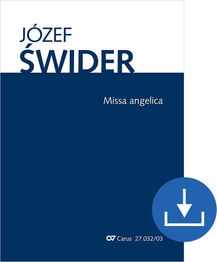 Der aus Polen stammende Józef Swider hat mehr als 250 Kompositionen für Chöre geschrieben, die sich großer Beliebtheit erfreuen. Heute gilt er als meist gespielter polnischer Komponist. Seine reich orchestrierte Missa angelica (1998) gibt es in je zwei Fassungen für Frauen- und gemischten Chor: Die Eine für Orchester, die Andere für Klavier oder Orgel (27.032/03 bzw. 27.032/53).