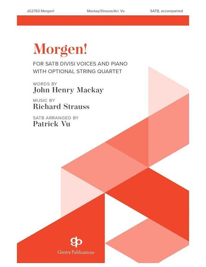 Patrick Vus Bearbeitung von Richard Strauss' Morgen!, Opus 27, Nummer 4, für SATB und Klavier gibt diesem beliebten Lied eine neue Perspektive. Ursprünglich 1894 komponiert, ist Morgen! eine ergreifende Vertonung eines deutschen Liebesgedichts von John Henry Mackay. Vus SATB-Arrangement fängt die Essenz der Zeitlosigkeit und Stille des Liedes ein, mit einer ruhigen Gesangslinie und den fließenden Klavierarpeggien des Originals, die ein erhabenes Gefühl der Versöhnung und Hoffnung hervorrufen. Die einfache und doch tiefgründige Botschaft des Gedichts - dass die Sonne morgen wieder scheinen wird - kommt in diesem Arrangement wunderbar zum Ausdruck und macht es zu einer bewegenden Wahl für Chöre, die tiefe Gefühle und Gelassenheit vermitteln wollen.