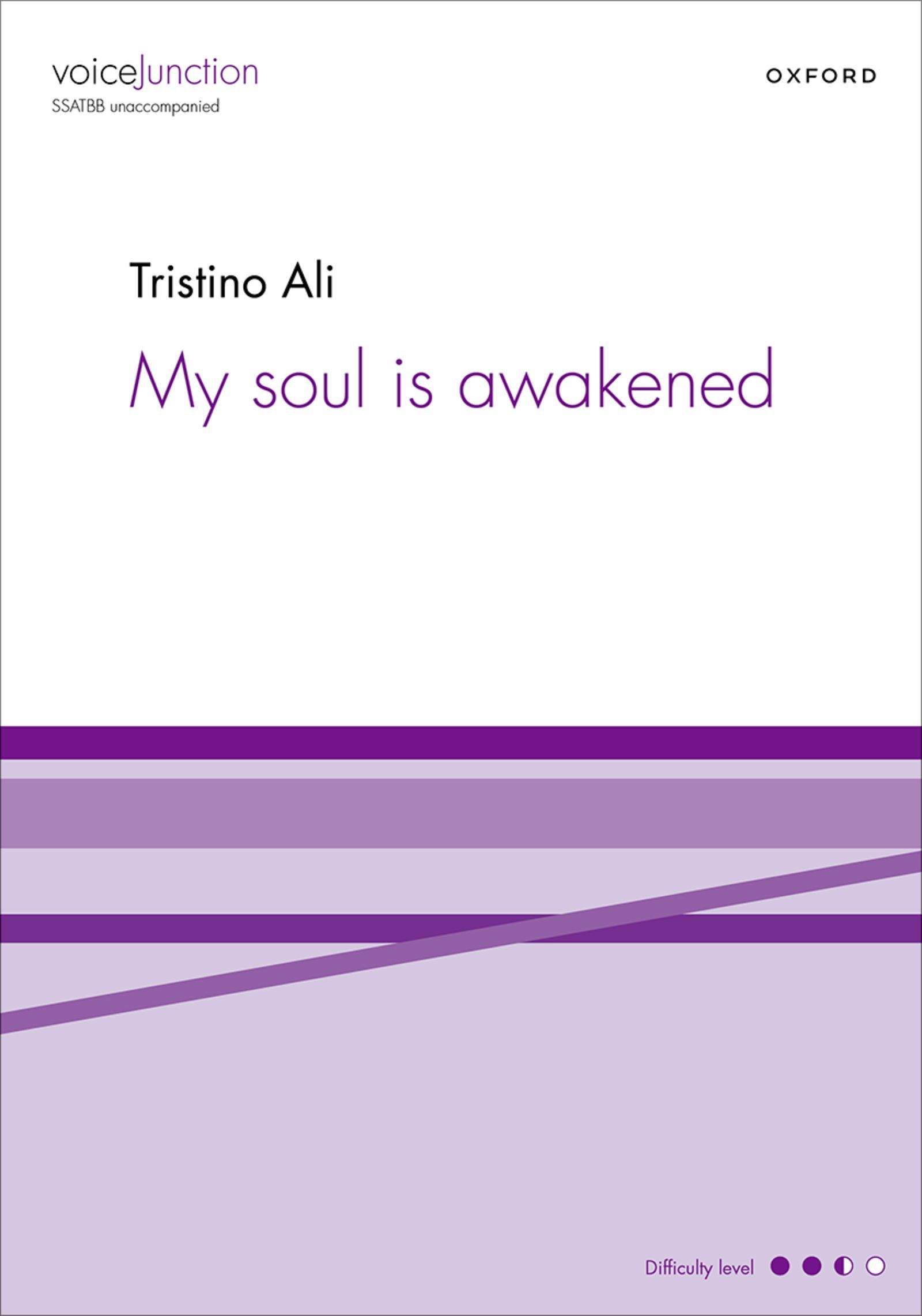My soul is awakened sets words by Anne Brontë about the uplifting effect of nature on the human spirit. Ali's setting is also suitably uplifting and ebbs and flows like the waters it represents. There is memorable melodic interest in all parts, resulting in a texturally and harmonically satisfying work.