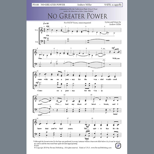 Rich, warm, earnest, and powerful all describe this universal anthem. The power of love is the message and it comes through in suspensions and resolutions. A piece for our times and for the generation of singers now in high school and college, it is a beautiful choral offering in any concert.