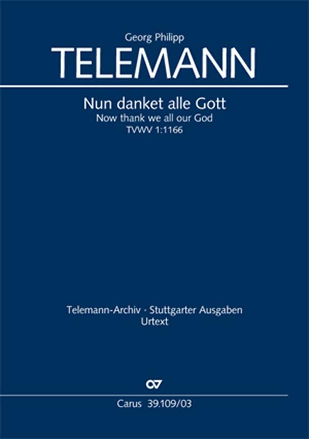 Kantate zum Erntedankfest (Tempore Messis) und andere Dankfeiern - Die Kantate lässt sich keinem der bekannten Telemannschen Kantatenjahrgänge zuordnen. Ihre im Titel der einzigen erhaltenen Quelle genannte Bestimmung 'Tempore Messis' deutet auf die Enstehung anlässlich eines Erntedankfestes hin, doch sind aufgrund der textlichen Neutralität auch andere Aufführungsanlässe denkbar wie Neujahr, Reformationsfest, Kirch- oder Orgeleinweihungen oder Trauungen. Soli SATB, Coro SATB, Fl (Blfl), 2 Tr, Timp, 2 Vl, Va, Bc
