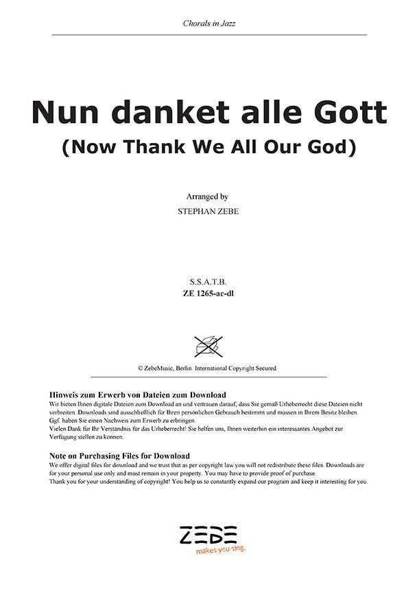 Die fröhliche Latin-Jazz Version des allseits bekannten Lobliedes für drei Frauen- und zwei Männerstimmen a cappella. Unsere Ausgabe erschien in der Reihe "Chorals In Jazz" in typischer Jazzharmonik in 5stimmigem, polyphonem Satz (S.S.A.T.B.) a cappella. Die Noten gibt es hier zum direkten Download.