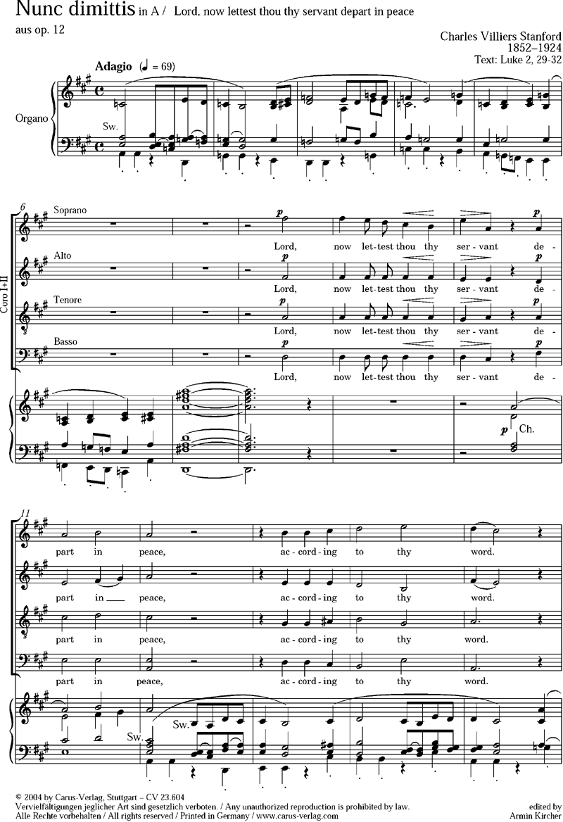 Nunc dimittis in A-Duraus op. 12