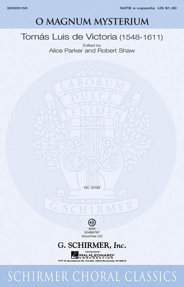 This famous Schirmer edition, now newly engraved, displays the simple line and homophonic textures for which de Victoria is known. Available separately, the VoiceTrax CD offers part-predominant tracks that are ideal for rehearsaland individual practice. Duration: ca. 3:00.