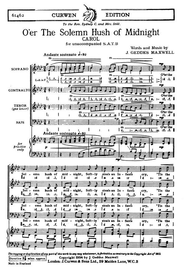 The choral setting of a traditional Christmas carol by J. Geddes Maxwell for mixed voices. A Piano accompaniment is provided for rehearsal purposes.