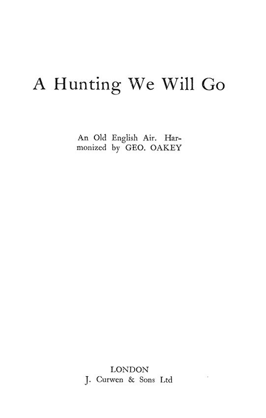 Oakey Hunting We Will Go SATB & Toni