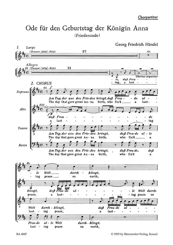Chorpartitur (deutsch/englisch) - Vocal Score based on the Urtext of the Halle Handel Edition (German/ English). Gemischter Chor-SATB - Chorpartitur