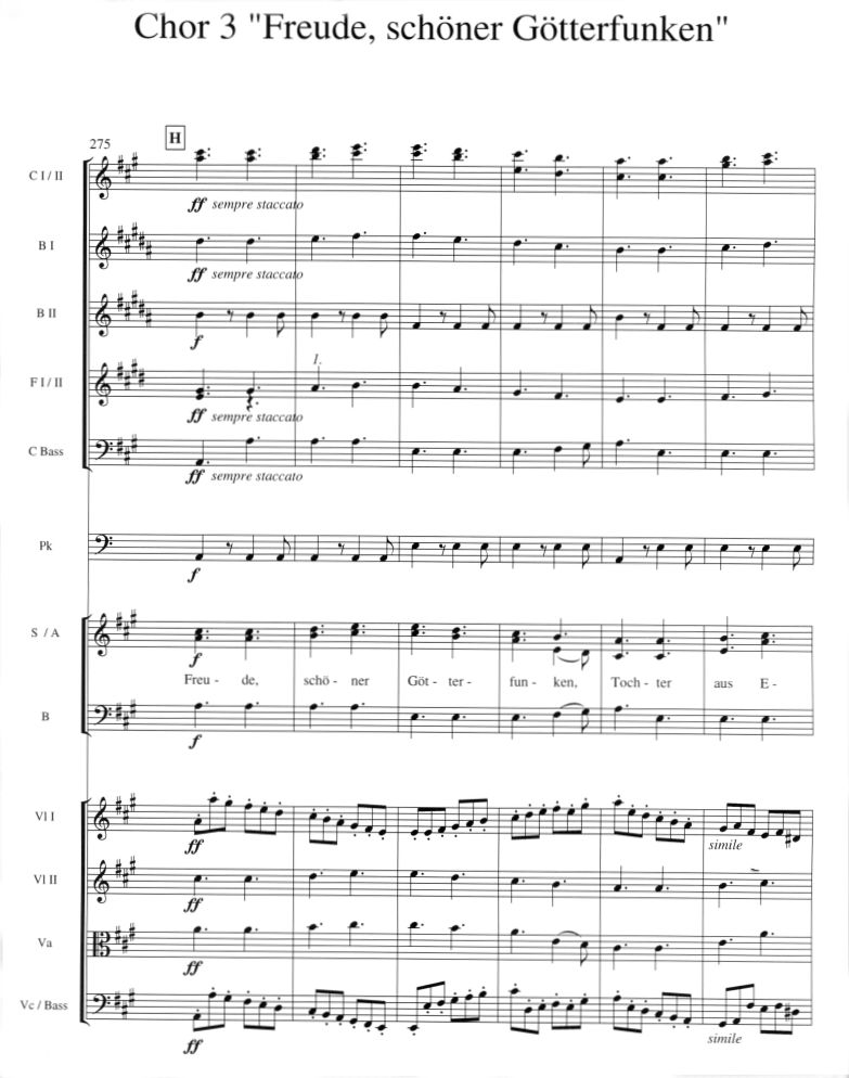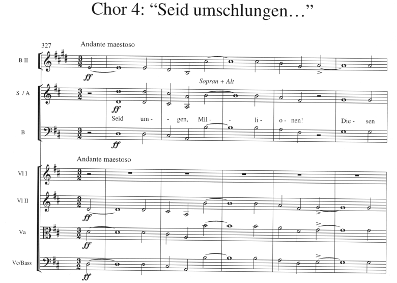 Die besungene Freude teilt sich zweifellos schon beim Einstudieren den Musizierenden mit. Das Ergebnis ist ein gemeinsames Erfolgserlebnis, in dem zumindest eine Ahnung von der Begeisterung des Dichters Friedrich von Schiller für die weltverbindende Wirkung der Freude mitschwingt. Die Aufführung macht jede Feier zum glanzvollen Fest.