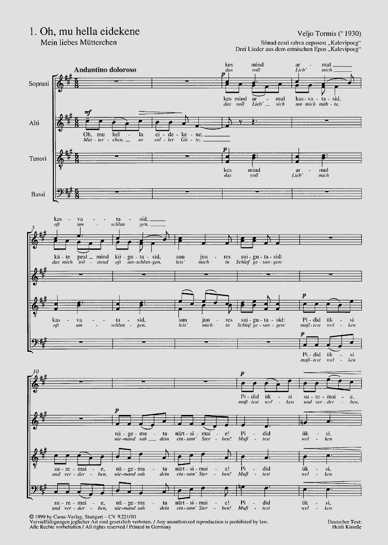 Drei Chorlieder aus dem Epos 'Kalevipoeg' - Coro SSAATTBB
