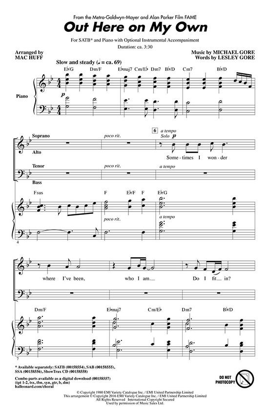 This ballad from the 1980 musical film Fame remains a powerful statement for young artists to follow their dreams and pursue their passion! This setting is an ideal closer for pop, show and concert choirs.