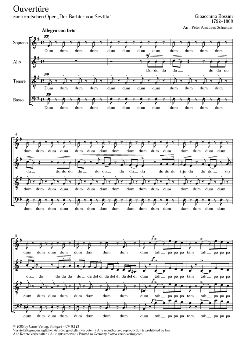 Arrangement der Orchesterouvertüre der Oper für Vokalstimmen.