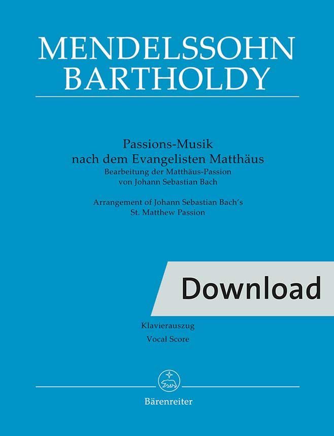 Die neue Bärenreiter-Ausgabe kehrt zu Mendelssohns einzigartiger Vision von Bachs Meisterwerk zurück, indem sie zusammenführt und durch den Herausgeber an einigen Stellen ergänzt, was Mendelssohn entworfen hat - das Werk in seinem reduzierten Umfang, mit der überarbeiteten Stimme für den Evangelisten (in den Secco-Rezitativen mit Orchesterbegleitung), mit Klarinetten, die die Oboe d'amore ersetzen, und mit einem Umsetzungsvorschlag für die fehlende Continuo-Stimme (die für die Orgel der Thomaskirche begonnen worden war, aber unvollendet blieb oder verloren ging). Die neue Ausgabe zeigt nicht nur Mendelssohns phantasievolle Neuinterpretation des Originals, sondern auch die Vielseitigkeit von Bachs Musik in seinen Händen. In einer Zeit, in der Bach fast ausschließlich von Barockorchestern gespielt wird, bietet sie Orchestern die Möglichkeit, eines der größten Werke Bachs aus der Perspektive des 19. Jahrhunderts aufzuführen.