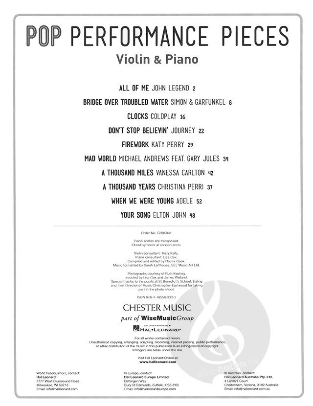 Pop-Noten für Klavier (rechte Hand Melodie), Gesang & Gitarre