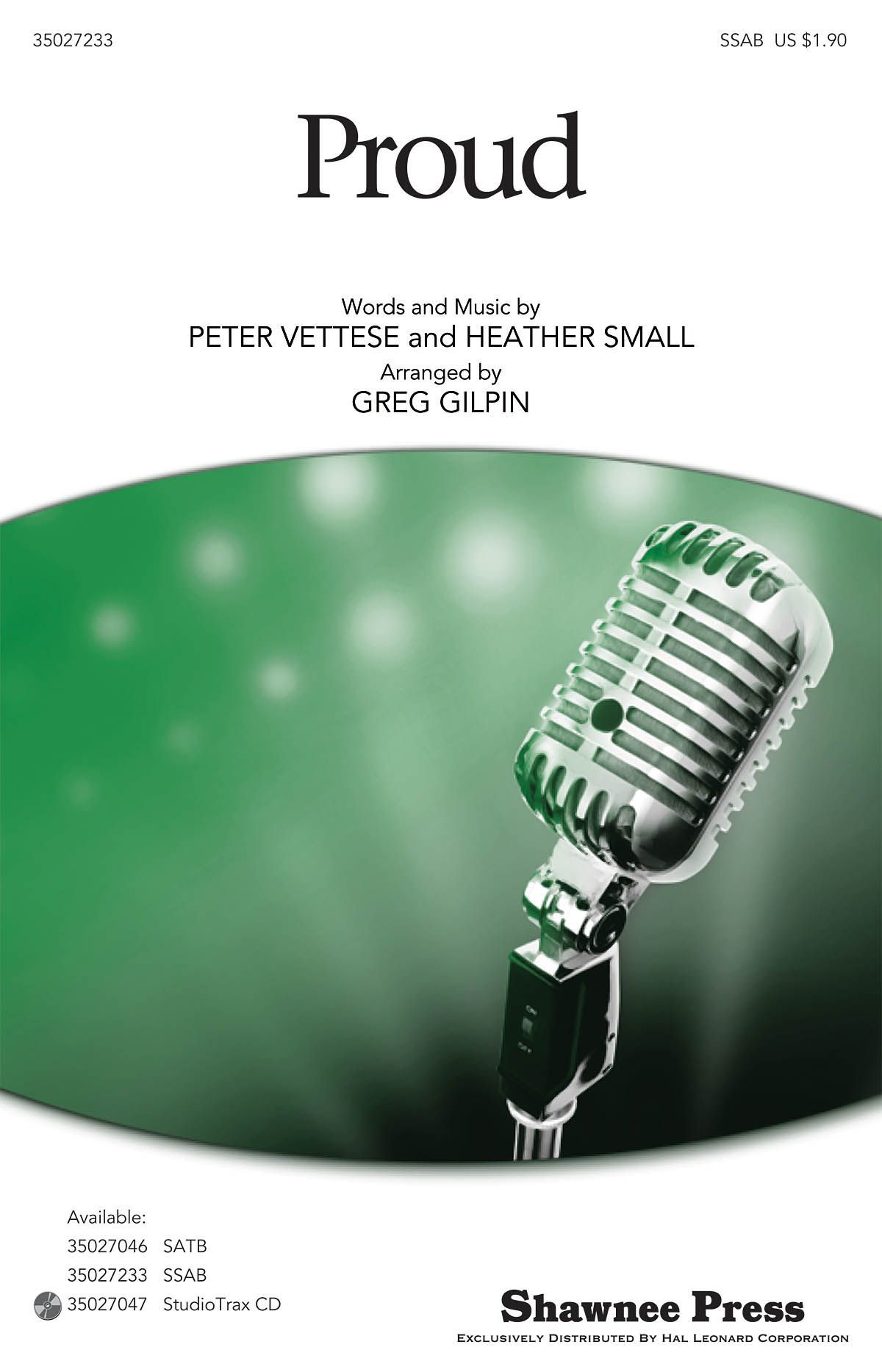 Proud has been featured on television and in movies, and is currently the theme song for NBC's The Biggest Loser. This knockout inspirational, gospel-infused chart is a must for your concert and show choir programming with lyrics of encouragement and individual strength! Available separately: SATB, SSAB, StudioTrax CD. Duration: 4:25.