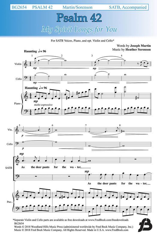 The text from Psalm 42, As the Deer pants for water, is often set to music that is joyful. This setting is contemplative, leaning more on the longing aspects of the text. Haunting is the expressive mark that begins the piece and it remains in that space except for a lovely and assuring reprise. It returns to the contemplative place as the piece ends. The optional flute and violin add a wonderful color to the piece.