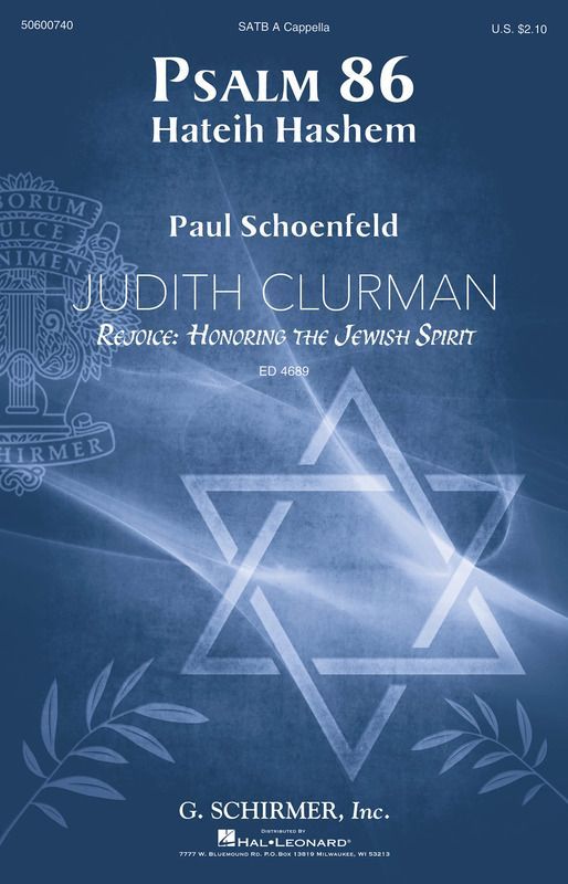 Commissioned by a consortium of choruses including Chanticleer, The Dale Warland Singers, and The Phoenix Bach Choir, this beautiful a cappella setting of Psalm 86 is a delicate powerhouse. In the text, the Psalmist pleads for Divine favor, in spite of his spiritual poverty. A simple and clear pronunciation guide is included along with a poetic translation making the Hebrew text both accessible and understandable.
