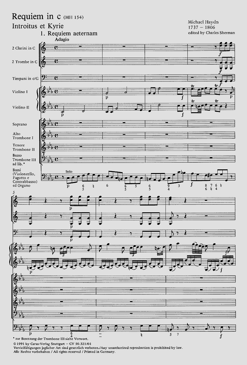 Soli SATB, Coro SATB, 2 Ctr, 2 Tr, (3 Trb), Timp, 2 Vl, Bc