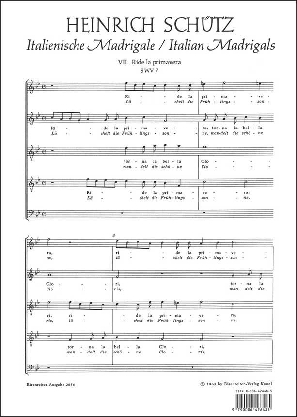 Italienisches Madrigal Nr. 7 (italienisch/deutsch). Urtext der Neuen Schütz-Ausgabe. Gemischter Chor-SSAB - Singpartitur; Urtextausgabe