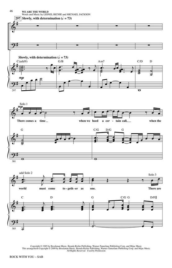 Michael Jackson was truly the King of Pop and certainly one of the most popular recording artists of all time with his stunning vocal versatility, his dazzling dance moves and unquestionable star quality. Choirs and audiences will thrill to this 15-minute medley of some of his greatest hits.