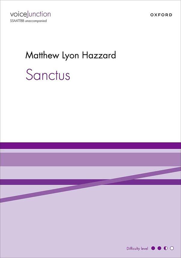 Hazzards bezauberndes Sanctus, das einen Text aus der lateinischen Messe vertont, vermittelt durchgehend das Gefühl einer rauschenden Strömung. Obwohl die Energie oft unter der Oberfläche pulsiert, bricht sie bei den schwungvollen Ausrufen von "Hosanna!" durch, wo Hazzard komplexe Metren, Bodypercussion und ein Gleichgewicht aus langsam anschwellenden Tönen und plötzlichen dynamischen Veränderungen einführt. Das konzerttaugliche Stück zeichnet sich durch fantasievolle Textvertonungen und treibende Rhythmen aus, die Sänger und Zuhörer gleichermaßen begeistern.
