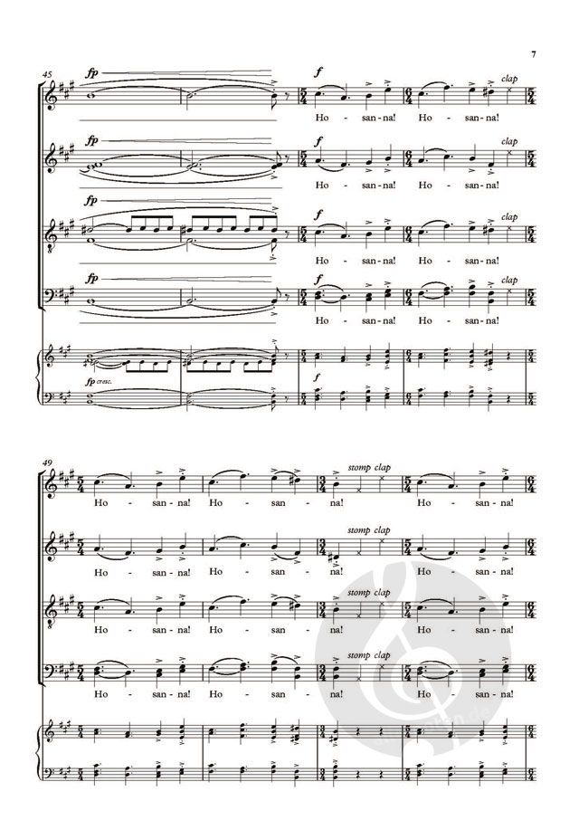 Hazzard's enchanting Sanctus, setting text from the Latin Mass, captures the feeling of a rushing current throughout. Suitable for concert use, this piece features imaginative text-setting and driving rhythms that create an engaging experience for singers and listeners alike.