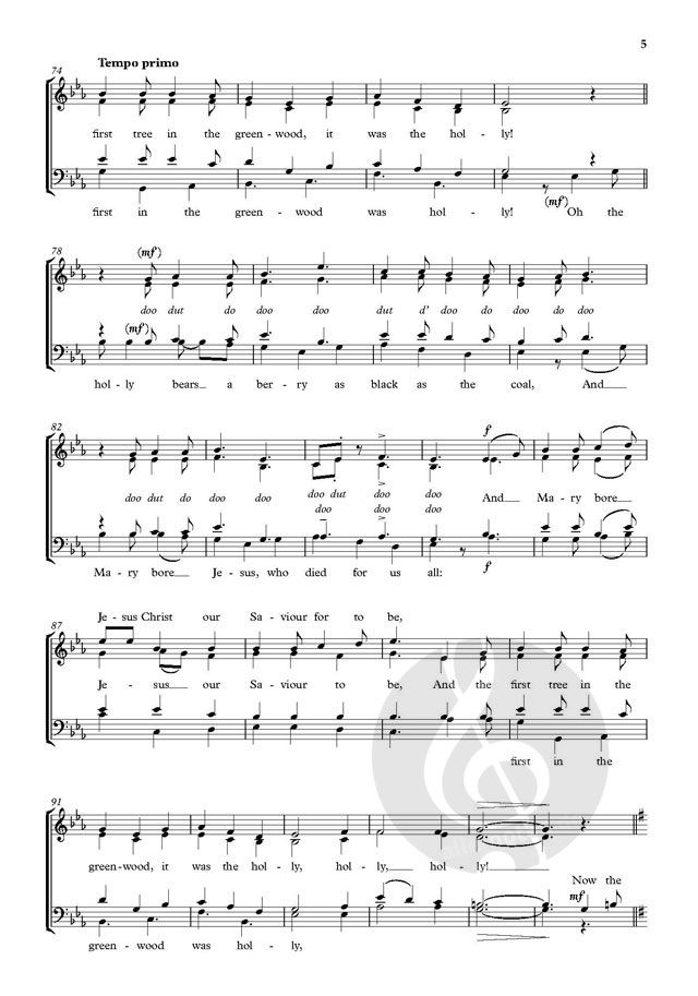 Pete Churchill's thrilling arrangement of this traditional Cornish carol has a gentle South African feel and features 'scat' singing and chromatic shifts in harmony. The traditional melody in 6/8 time is set against a jazz-waltz rhythm, giving a contemporary twist to this Christmas classic.