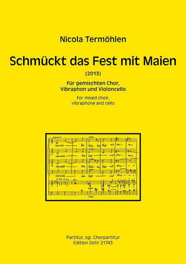 'Schmückt das Fest mit Maien' für gemischten Chor, Vibraphon und Violoncello entstand als Auftragswerk für das Vokalensemble Wandestal in Hamburg Wandsbek unter Leitung von Kantor Frank Vollers. Als Pflichtteil des Kompositionsauftrages und somit meine inspirative Grundlage diente mir der zum Pfingstfest erschienene Text von Benjamin Schmolck (1672-1737) aus dem Jahr 1715, den man im Evangelischen Gesangbuch unter der Nummer EG 135 findet. (Nicola Termöhlen)
