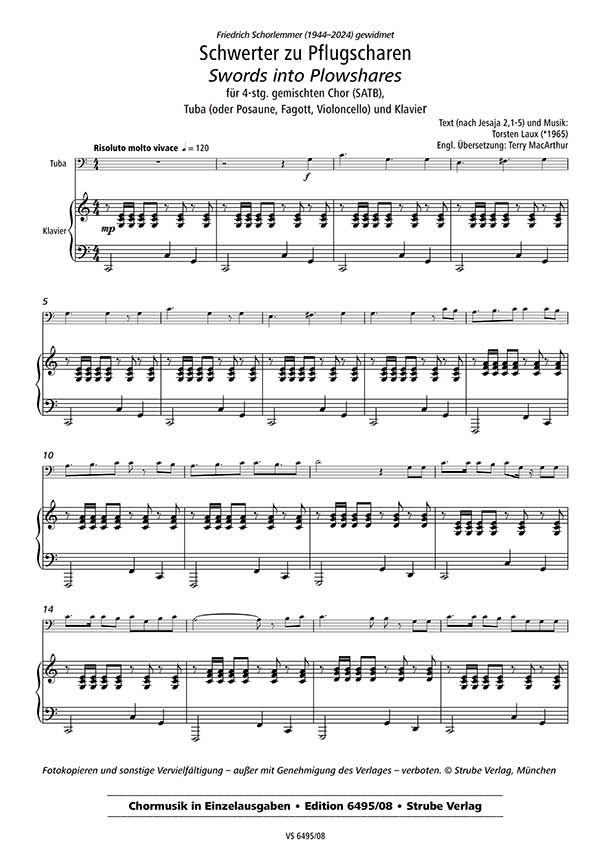 für 4-stg. gemischten Chor (SATB), Tuba (oder Posaune, Fagott, Violoncello) und Klavier und für 3-stg. Frauenchor und Klavier