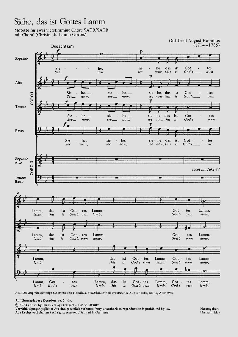 in Kombination mit dem Choral 'Christe, du Lamm Gottes' von Martin Luther (1525) - Coro SATB/SATB
