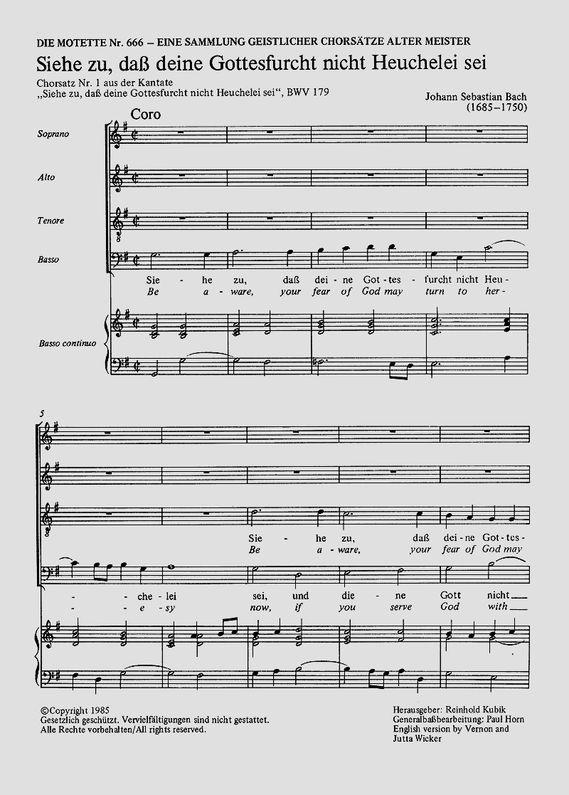 - Besetzung Gemischter Chor (SATB) und Basso Continuo