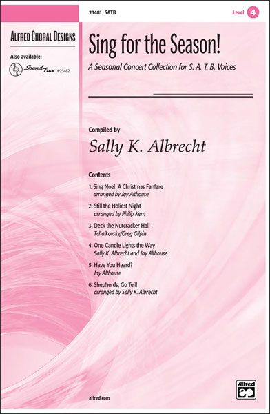 We've combined six of our best-selling Alfred Choral Designs seasonal titles into each of these convenient, price-saving publications. Use the six chorals individually, or perform them together as a ready-to-go 20-minute December program. Each of these four collections has been carefully selected to provide your singers and audience with a dynamic and rewarding concert experience. Includes: Sing Noel: A Christmas Fanfare (Althouse), Still the Holiest Night (arr. Kern), Deck the Nutcracker Hall (Tchaikovsky/Gilpin), One Candle Lights the Way (Albrecht, Althouse), Have You Heard? (Althouse), Shepherds, Go Tell! (arr. Albrecht).