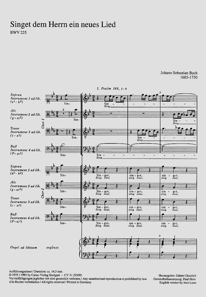 Singet dem Herrn ein neues Lied BWV 225