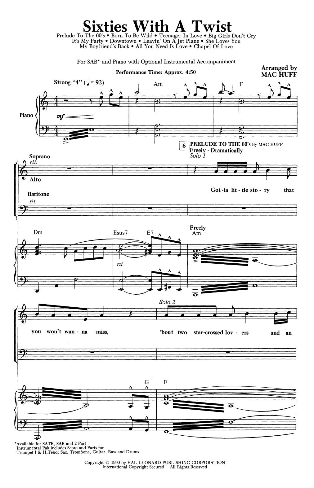 It's a hilarious love story told '60s-style, and the lyrics of these ten classics tell it all! Available: SATB, SAB, 2-Part, ShowTrax CD. Performance Time: Approx. 4:50.