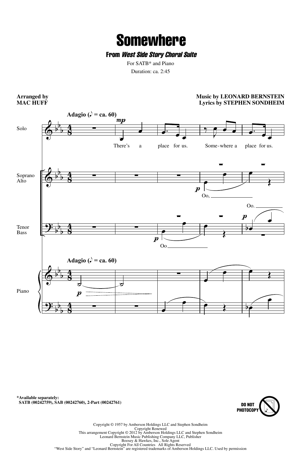 This classic love song from the Leonard Bernstein musical West Side Story is timeless. This is a powerful concert setting of this song which is a perfect selection during this celebration of Bernstein's 100th birthday.