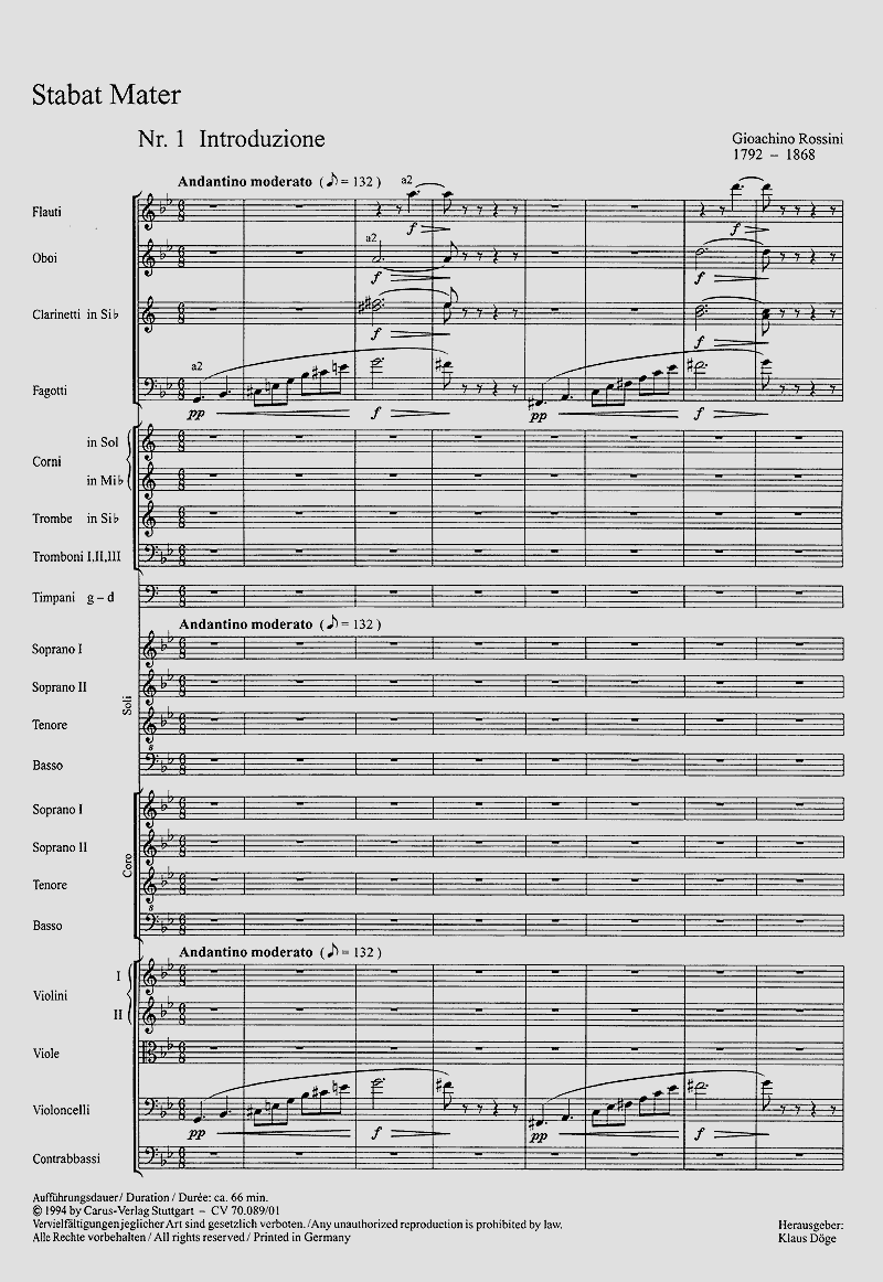 - Besetzung Soli (SSTB), gemischter Chor (SSTB) und Orchester