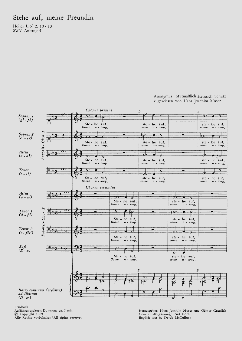 Früher Heinrich Schütz zugeschrieben - Coro SSAT/ATTB, [Cb, Org] - Partitur (ohne Umschlag) - Tonart d-dorisch