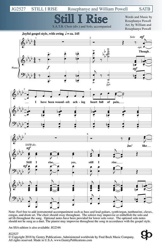 Composed originally for treble choir, this piece has been one of the most popular selections in the Gentry catalog. Directors have been begging for an SATB voicing for years, and it is finally here. The title is the message, one of hope and resiliency. The gospel style writing includes a soloist, call and response lines, and builds to a glorious ending. This selection works in church and school. Easy to medium in difficulty.
