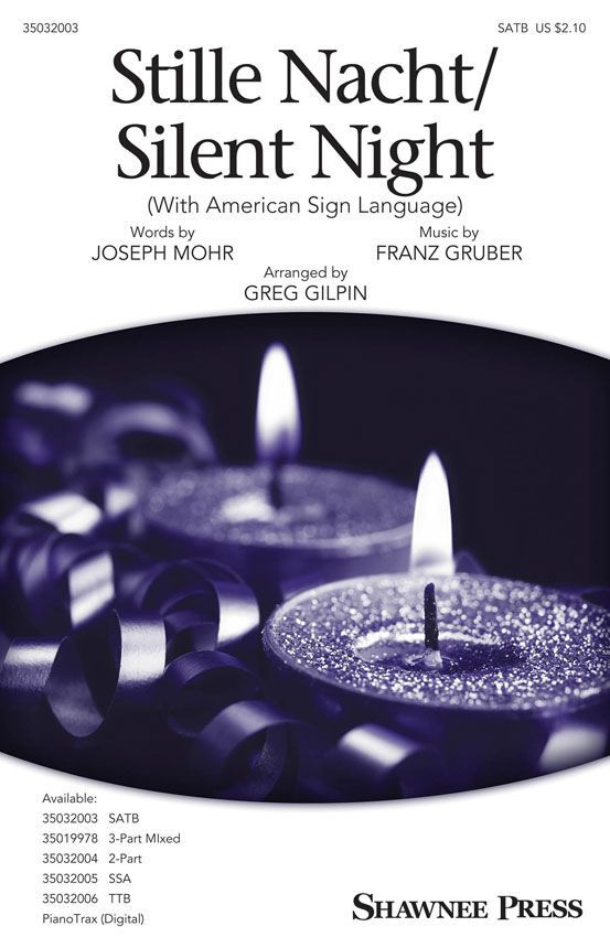 Unique, accessible to all ages, and stunningly beautiful describes this arrangement of the beloved carol. Incorporating the use of American Sign Language throughout, the piece begins in German sung by a soloist, then by the choir, singing then in English, then with oos and finally only singing with American Sign Language, filling the room with silent splendor. It is truly a work that will become a tradition for your choir. The ASL vocabulary is included in the choral.