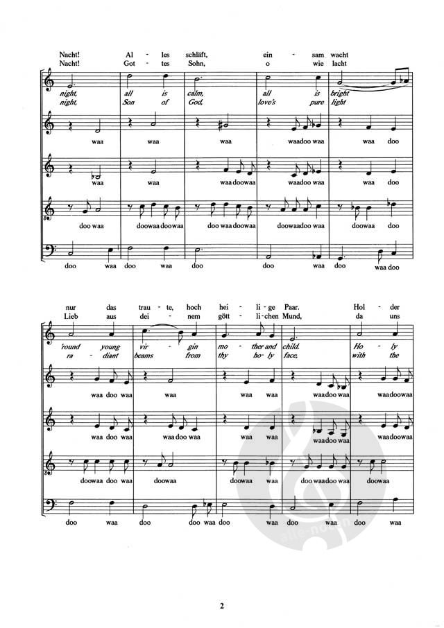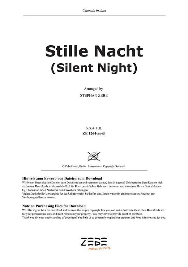 Jazzig, grooviges Arrangement des Weihnachtsklassikers aus Österreich für fünf gemischte Stimmen a cappella (S.S.A.T.B) mit unterlegtem deutschen und englischen Text. Die Noten gibt es hier zum direkten Download.