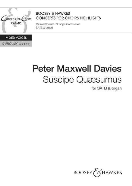 Diese leicht zugängliche Motette ist das Begleitstück zu Lullabye for Lucy (ISMN 979-0-060-03760-3), das anlässlich der Geburt von Lucy Rendall geschrieben wurde, dem ersten Kind, das seit über 32 Jahren in Rackwick auf der Orkney-Insel Hoy geboren wurde. Suscipe Quæsumus wurde erstmals von den Mayfield Singers unter Neil Price gesungen, dieses Mal aus Anlass der Hochzeit von Lucy Rendall in der St Magnus Cathedral, Orkney, am 18. Juli 2005. Suscipe Quæsumus ist eine Einzelausgabe aus dem Band 'Calmo' der Reihe Concerts for Choirs (ISMN 979-0-060-11770-1).