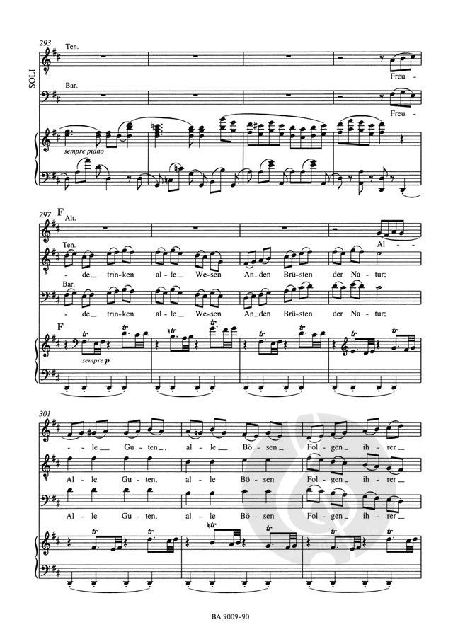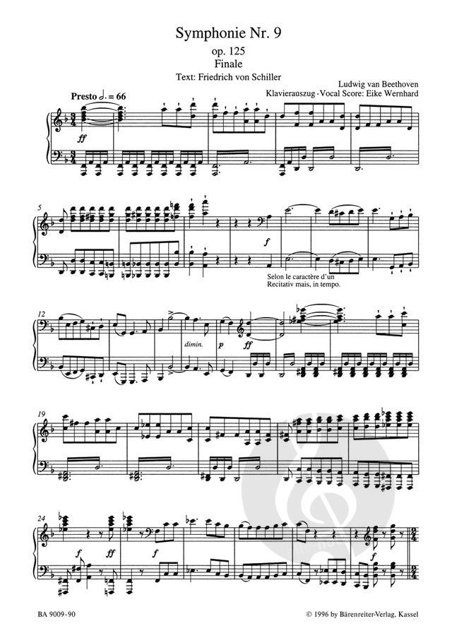 Nach dem Urtext. Sopran solo, Alt solo, Tenor solo, Bass solo, Gemischter Chor-SATB, Piccolo, Flöte (2), Oboe (2), Klarinette in b (2), Fagott (2), Kfag, Horn (4), Trompete (2), Posaune (3), Pauke, Schlagzeug, Streicher - Klavierauszug