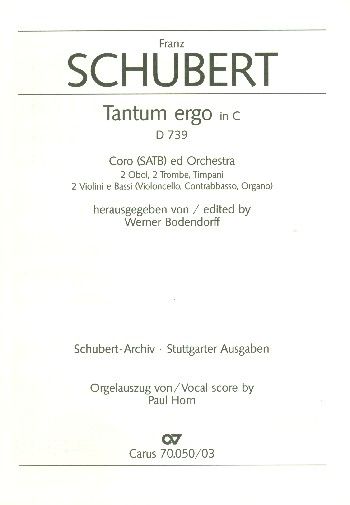 - Gemischter Chor (SATB), 2 Oboen, 2 Trompeten, Pauke, 2 Violinen, Cello und Orgel