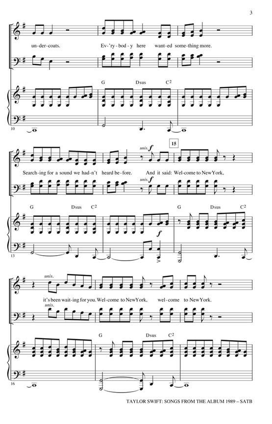 Debuting at #1 on the Billboard album charts, this 5th release from Taylor Swift represents her shift from country to pop. This 7-minute medley will be an awesome feature for treble and mixed choirs of all levels.