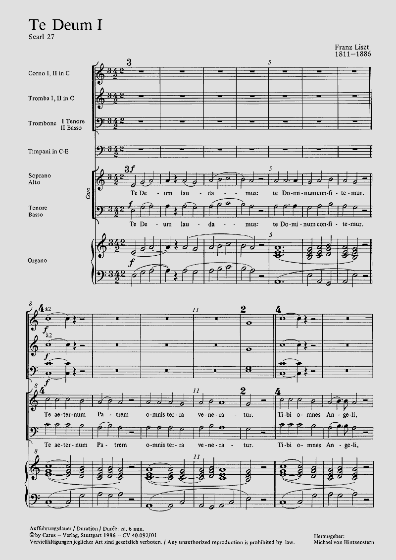 Coro SATB (TTBB), 2 Cor, 2 Tr, 2 Trb, Timp, Org