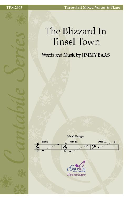 Jimmy Baas' "The Blizzard in Tinsel Town" erzählt die Geschichte einer Weihnachtsfeier, die durch einen überraschenden Schneesturm unterbrochen wird, komplett mit Weihnachtsliedern, Schneeballschlachten und Weihnachtsstimmung. Das für dreistimmige gemischte Stimmen geschriebene Stück kombiniert eine clevere Geschichte mit energiegeladenem Chorgesang und ist damit ein unvergessliches Highlight für jedes Weihnachtskonzert.