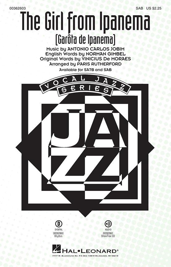 Now available for SAB. Brazilian composer, pianist, songwriter, arranger and singer Antonio Carlos Jobim has given us many great songs but none more popular than this. As one of the most recorded songs of all time, this new arrangement in a samba style is a wonderful introduction to this important composer, this important style and this popular song. Accompanied by a rhythm section, their parts are written out to clearly give your players--young or old--a solid foundation in this Latin style. The vocal harmonies are not too dense and will be quickly learned giving your singers an excellent opportunity to explore the style.