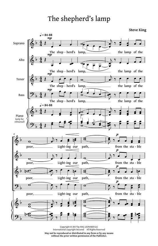 This simple strophic carol connects the light from the shepherd's lamp at the stable door to the light that Jesus shines on the pathway of the believer. On the final verse, it grows to a glorious high point, then fades to a prayerful conclusion.