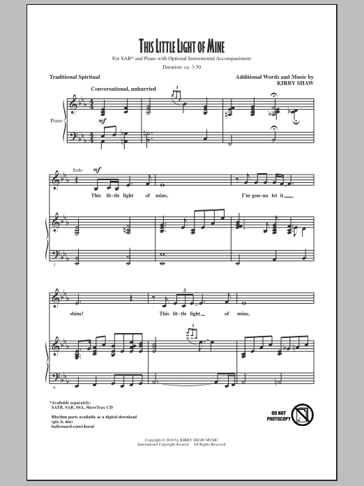 Opening with a bluesy, improvisational introduction, this spiritual favorite breaks into an easy gospel swing. Easy harmonies, call and response lines and finally a fuller chorus with descant builds to an inspirational finale. Available separately: SATB, SAB, SSA, ShowTrax CD. Duration: ca. 3:30.
